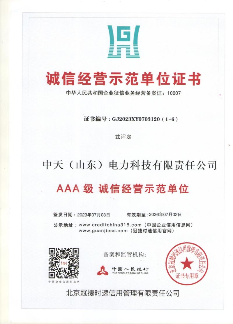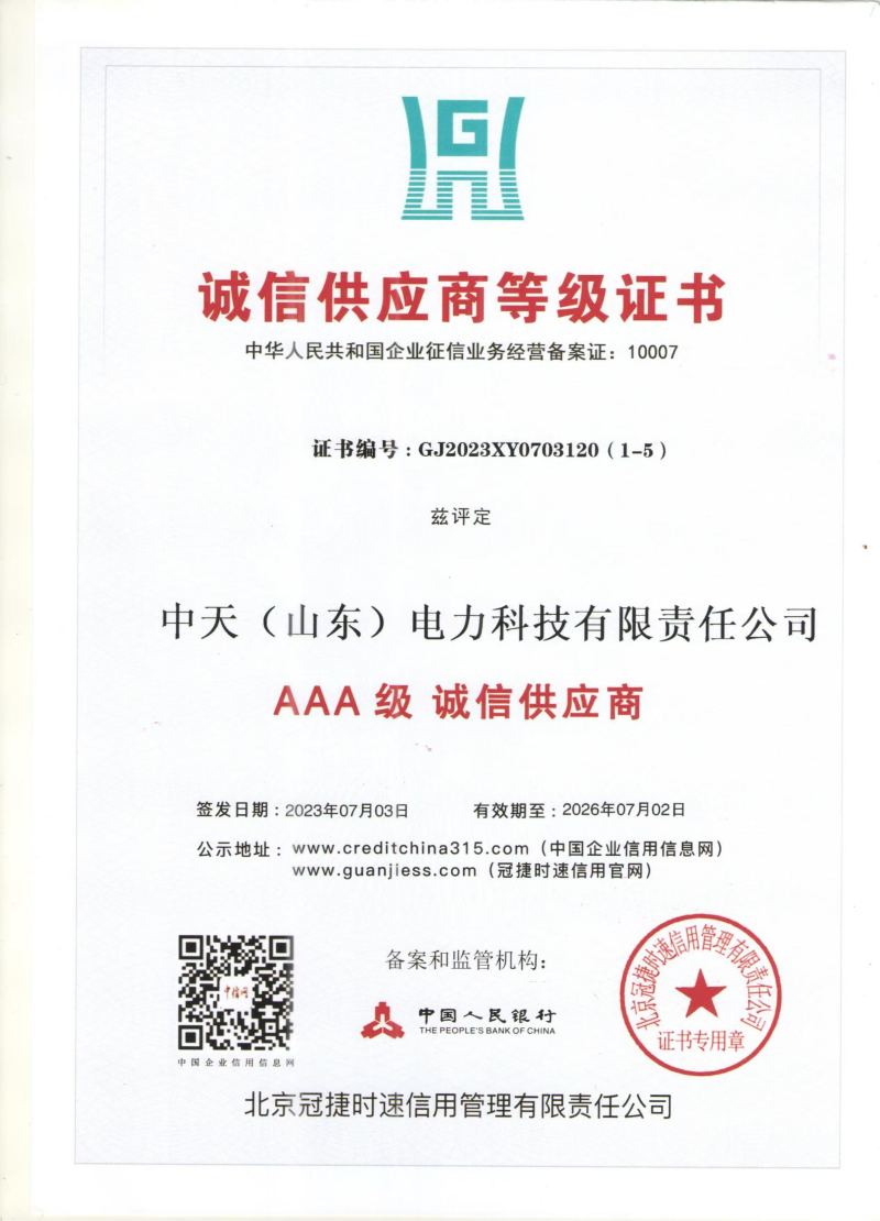 诚信供应商证书