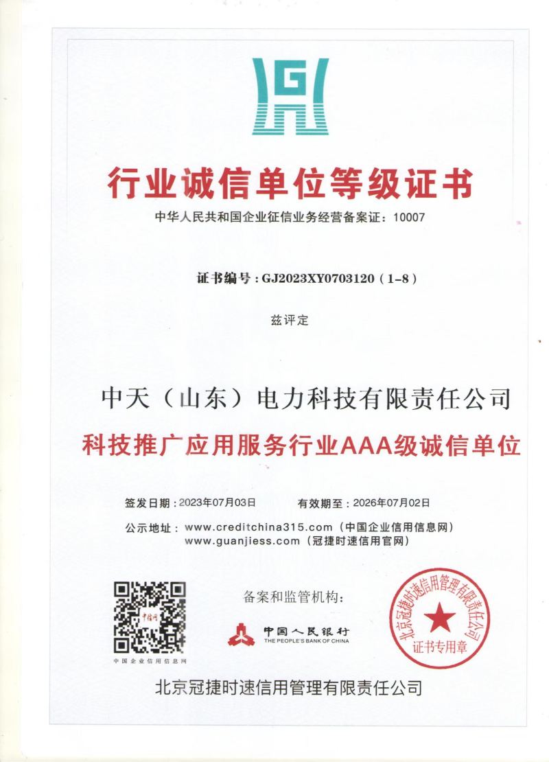 行业诚信证书